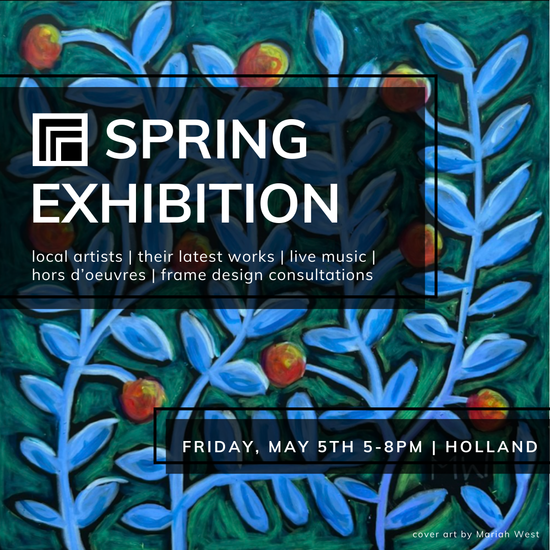 Starting November 2022, she was hired at The Frame and Mat Shop, in Holland, MI to support the business in launching new gallery space that showcases regional artists and artisans. As part of this initiative she produces regular gallery events, manages artist representation, and all inventory. PJ’s title with the Frame and Mat Shop is Curator, and Custom Picture Framer.